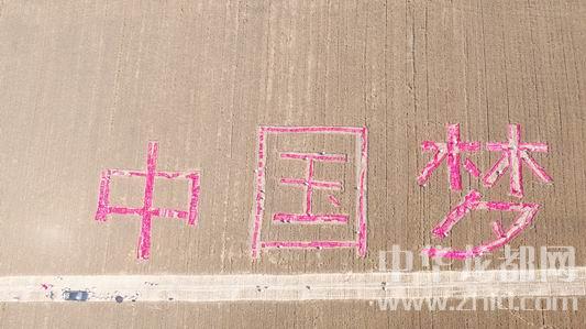 記者在現場看到,“中國夢”三個字每個字高約30米,寬約23米,間隔約10米,筆畫寬約2米。為了讓字跡突出,他們把以前懸掛宣傳標語的廢棄紅布條,鋪在麥茬上。一片金黃中,紅艷的字體格外奪目。