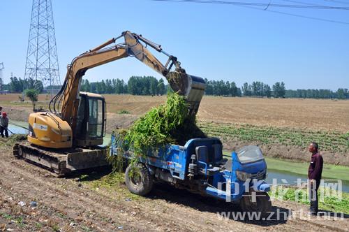 為切實(shí)做好環(huán)境整治工作,近日,商水縣加大環(huán)保督察問題整改工作力度,開展大排查、大整治、大掃除行動(dòng),確保整改到位。6月12日,一臺(tái)大型機(jī)械正在打撈運(yùn)送河道水面上的漂浮垃圾(上圖);工作人員正在駕駛小船打撈河道水面上的雜草和垃圾(下圖)。記者 付永奇 通訊員 魏紅 攝