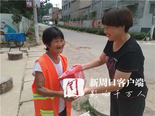 上午10時(shí)許,欣中基清潔公司經(jīng)理張志宏來到邵寨行政村??吹铰访娓筛蓛魞簦芨吲d。除了例行巡視,張志宏此行還有一項(xiàng)任務(wù):向每位保潔員發(fā)放一件飲料?!疤鞖獬掷m(xù)高溫,保潔員們露天辛勤勞動(dòng),給村民們創(chuàng)造了良好的生活環(huán)境。因此,公司決定開展慰問活動(dòng)?!苯舆^飲料,邵天錄等6名保潔員滿臉笑容地連聲道謝。