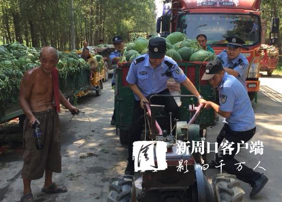 三伏天里,西瓜是不可或缺的消暑水果,但一些瓜農(nóng)在出售西瓜時(shí)卻往往忽視了交通秩序,因車輛停放不當(dāng)造成交通擁堵。扶溝縣公安局江村派出所民警冒著酷暑,加強(qiáng)轄區(qū)西瓜市場(chǎng)巡邏,及時(shí)疏導(dǎo)擁堵路段交通。圖為7月18日,民警正在疏導(dǎo)西瓜市場(chǎng)擁堵車輛。