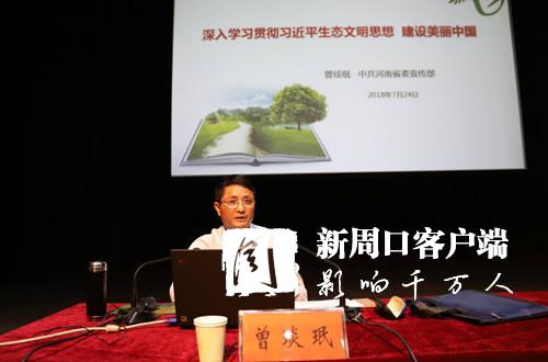 羅文閣表示,曾琰珉教授以“深入學習貫徹習近平生態(tài)文明思想 建設美麗中國”為題,從習近平生態(tài)文明思想提出的時代背景、生態(tài)文明建設是關系中華民族永續(xù)發(fā)展的根本大計、習近平生態(tài)文明思想是建設美麗中國的根本遵循、當前生態(tài)環(huán)境保護面臨的形勢和任務、加強黨對生態(tài)文明建設的領導等方面,全面系統(tǒng)、深入淺出地闡述了習近平生態(tài)文明思想和全國生態(tài)環(huán)境保護大會精神的重大意義、豐富內(nèi)涵和精神實質(zhì),具有很強的指導性、針對性。全縣上下要深入學習領會,讓習近平生態(tài)文明思想深入人心;堅持問題導向,堅決打好打贏污染防治攻堅戰(zhàn);強化政治擔當,全力推進鄲城縣生態(tài)文明建設,以生態(tài)文明建設高質(zhì)量推動經(jīng)濟發(fā)展高質(zhì)量。