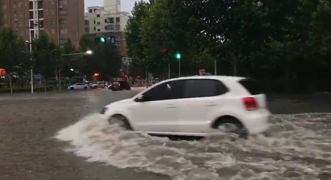 記者在周口市東新區(qū)觀察到,降水從26日下午4點多開始,一直持續(xù)到夜間,其間伴有雷電和大風。26日傍晚6時許,記者在周口市文昌大道看到,積水嚴重的地方已經(jīng)淹沒了自行車大半個輪胎,一些行人涉水而行,車輛則猶如沖浪前進。