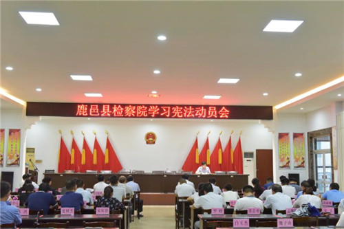為了弘揚(yáng)憲法精神,切實(shí)履行憲法定位,達(dá)到學(xué)習(xí)憲法、理解憲法、維護(hù)憲法、運(yùn)用憲法的目的,7月30日,鹿邑縣檢察院召開學(xué)習(xí)憲法動(dòng)員會(huì)??h紀(jì)委監(jiān)委駐檢察院紀(jì)檢監(jiān)察組長、黨組成員王首功對憲法的序言和憲法修改的背景進(jìn)行了細(xì)致的解讀。院黨組書記、檢察長魯建軍在主席臺(tái)下認(rèn)真聽、認(rèn)真記,作為一名普通干警一起認(rèn)真聆聽了憲法解讀。