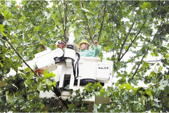 上圖 電力搶修人員在芙蓉路維修線路。記者 竇娜 攝