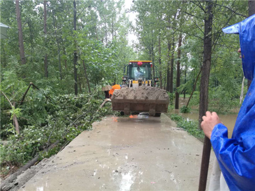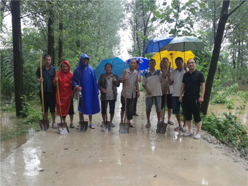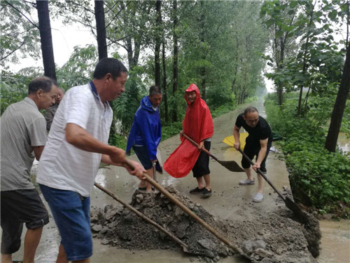 8月19日早7點(diǎn),陳留張駐村工作隊(duì)長李成功、村副主任張建靈發(fā)現(xiàn)險(xiǎn)情后,便開始緊急會(huì)商,提出科學(xué)搶修方案。最后確定,調(diào)用本村的鏟車,利用本村商砼站的石料,組織本村的村民,迅速趕赴事發(fā)地點(diǎn)開展搶修工作。