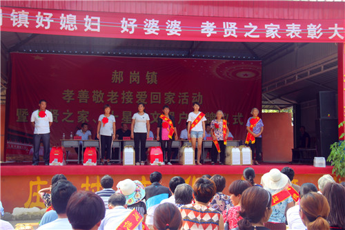 此次表彰大會(huì),郝崗鎮(zhèn)通過層層篩選,共評(píng)選出6名好婆婆,15名好媳婦,8戶孝賢之家,孝老敬老、接愛回家先進(jìn)人員24人,十星級(jí)文明戶582戶??h政協(xié)副主席、工商聯(lián)主席彭發(fā)光及鎮(zhèn)全體領(lǐng)導(dǎo)班子成員、干部職工、各個(gè)行政村“兩委”成員、各駐村工作隊(duì)、駐村第一書記及受表彰的“好婆婆、好媳婦、孝賢之家”400余人參加了會(huì)議。會(huì)議由鎮(zhèn)長姚哲主持。