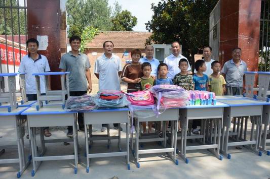 8月27日上午11時(shí)許,商水縣平店鄉(xiāng)大朱莊村小學(xué)大 門外,突然停放一輛廂式貨車??吹接袉挝凰蛠?lái)了“開(kāi)學(xué)禮”,學(xué)校老師和學(xué)生滿臉興奮 、七手八腳和來(lái)人一塊卸下一些嶄新的課桌凳、書(shū)包文具等學(xué)習(xí)辦公用品。