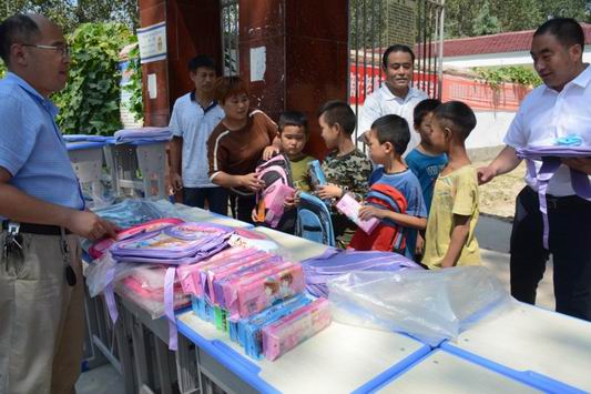 “我們這個(gè)小學(xué)是建校幾十年的老學(xué)校,很多桌凳都很破舊了。這不,剛剛開(kāi)學(xué),村里幫 扶企業(yè)就給俺送來(lái)了課桌凳、書(shū)包文具,電腦桌、檔案柜,現(xiàn)在國(guó)家扶貧政策就是好。你 看,這些學(xué)生都很高興,我們學(xué)生雖然不多一定要用心教學(xué),以實(shí)際行動(dòng)報(bào)答社會(huì)的關(guān)愛(ài) ......”校長(zhǎng)任海峰感激之情溢于言表。