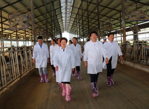 8月29日,扶溝縣長張穎波,縣委常委、副縣長趙紅亮帶領(lǐng)縣政府辦、縣財政局、縣農(nóng)牧局、縣國土資源局、縣金融辦、韭園鎮(zhèn)和寶樂奶業(yè)主要負責人赴花花牛科技有限公司參觀考察,就雙方合作進行洽談對接。