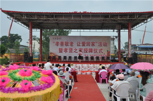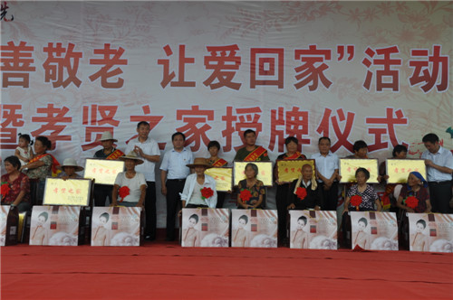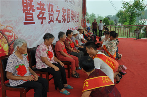 大會(huì)開(kāi)始之前,來(lái)自該鄉(xiāng)20個(gè)行政村的廣場(chǎng)舞代表隊(duì)、戲曲代表隊(duì)、嗩吶代表隊(duì)先后出場(chǎng),訾秀玲一曲《黃土高坡》贏得全場(chǎng)觀眾雷鳴般掌聲。緊接著,好兒子、好媳婦代表上臺(tái)為自己的父母磕了3個(gè)響頭,以表達(dá)對(duì)父母養(yǎng)育之恩的感激之情,老人們臉上流露出激動(dòng)和幸福的淚水,現(xiàn)場(chǎng)掌聲經(jīng)久不息??h領(lǐng)導(dǎo)在主席臺(tái)上為36個(gè)孝賢之家授牌,并向獲獎(jiǎng)?wù)弑硎咀YR。據(jù)介紹,該鄉(xiāng)自開(kāi)展孝善敬老接老人回家活動(dòng)以來(lái),已有200多名獨(dú)居老人被兒子、媳婦接回家居住。為了表彰接老人回家的好兒子、好媳婦和孝賢之家,該鄉(xiāng)組織、策劃了這次大型活動(dòng)。