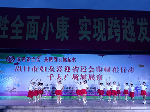 9月5日下午,伴隨著開場序曲大盤鼓《歡天喜地舞起來》,由周口市婦聯(lián)主辦的全市婦女“喜迎省運(yùn)會 巾幗在行動(dòng)”千人廣場舞展演活動(dòng)拉開序幕?;顒?dòng)現(xiàn)場,20余支廣場舞隊(duì)伍現(xiàn)場展演,共同為省運(yùn)會在咱家門口舉辦加油助威、增光添彩,展示了周口全民健身運(yùn)動(dòng)的累累碩果和新時(shí)代女性的幸福生活。