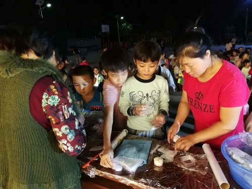 隨后,老師登臺向大家講授并示范如何制作月餅。小朋友們戴上手套,在老師的指導(dǎo)和幫助下,親手制作月餅,搓揉、按壓、塑形……不大一會兒功夫,一個個形狀各異的月餅呈現(xiàn)在大家面前。王如涵小朋友開心地說:“這是我第一次做月餅,我要把月餅送給奶奶吃?!?