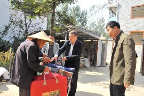 為進(jìn)一步弘揚中華民族敬老、愛老、助老的優(yōu)良傳統(tǒng)美德,讓結(jié)隊幫扶村——太康縣王集鄉(xiāng)李小橋行政村90歲及以上老人過一個溫馨又和諧的重陽佳節(jié),10月12日,周口市稅務(wù)局黨委委員、副局長徐平烽,黨委委員、總會計師李霞,黨委委員、總經(jīng)濟(jì)師張振祥等在對全村9名高齡老人進(jìn)行了走訪慰問,為老人們送上節(jié)日的祝福和價值近2000元的慰問品。