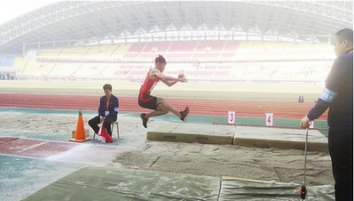 10月24日上午,河南省第七屆殘疾人運動會跳遠(yuǎn)比賽在市體育中心體育場進(jìn)行。在跳遠(yuǎn)賽場,參賽選手完成每一次跳躍后,都會與裁判員進(jìn)行溝通,認(rèn)真對待比賽。 ②8 記者 牛思光 攝