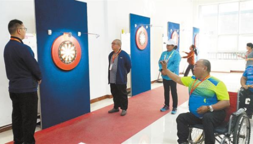 10月24日下午,河南省第七屆殘疾人運動會飛鏢項目坐姿組比賽在市體育中心老年館進(jìn)行。參賽選手在認(rèn)真比賽的同時,也會在比賽間隙放松心情,相互分享各自的心得,享受比賽的過程。②8 記者 牛思光 攝