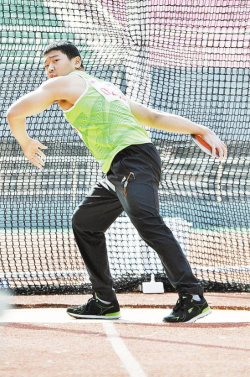 10月24日上午,河南省第七屆殘疾人運動會田徑項目中的擲鐵餅比賽正進(jìn)行得如火如荼。圓圓的鐵餅從運動員的手中拋出,劃過美麗的天空,落在草地上。該項運動展示了運動員陽剛、拼搏的一面。圖為比賽現(xiàn)場。②8 記者 梁照曾 攝