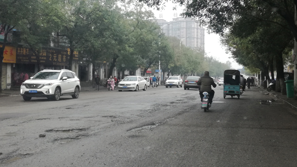 11月8日,記者現(xiàn)場(chǎng)采訪發(fā)現(xiàn),中州大道和人和街交叉口以北路段,路面瀝青剝離脫落、布滿大大小小的坑,碎石子散落滿地,車(chē)輛經(jīng)過(guò)時(shí),都不得不減速繞行。