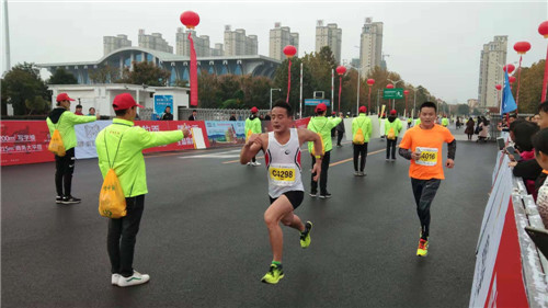 11月18日,在2018周口馬拉松暨善跑中國周口站現(xiàn)場,一個(gè)個(gè)身穿統(tǒng)一服裝的志愿者活躍在賽道之上,他們或給選手舉路線指示牌,或伸出大拇指給路過選手一個(gè)大大的“贊”,成為賽場內(nèi)外一道靚麗的風(fēng)景。