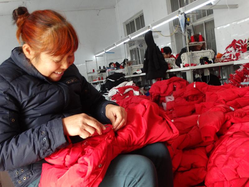 近年來,沈丘縣在打響脫貧攻堅戰(zhàn)和鞏固提升脫貧攻堅成果工作中,大力發(fā)展家庭手工業(yè),帶動全縣5000余名留守婦女家門口就業(yè),年人均增收2萬元。左圖為11月19日,周營鎮(zhèn)馬營村留守婦女高英在一個兒童服裝加工點(diǎn)忙著剪線頭。②5 謝辛凌 攝