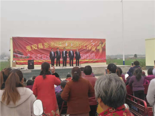 為扎實(shí)推進(jìn)精準(zhǔn)扶貧工作,豐富農(nóng)村文化生活,11月27日至11月30日,淮陽縣委老干部局發(fā)揮老干部優(yōu)勢,組織縣老干部藝術(shù)團(tuán)赴四個(gè)幫扶村進(jìn)行“文化惠農(nóng),助力扶貧”慰問演出,為廣大群眾送上一份豐盛的文化大餐。