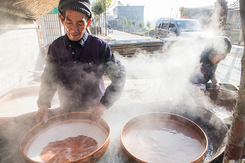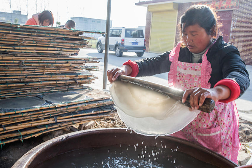 該村地處豫皖兩省交界處,是一個(gè)聞名遐邇的粉皮加工專業(yè)村。村里人手工做粉皮已有近百年歷史,從事粉皮加工的村民達(dá)500多人。 來到這里,您可以看到手工做粉皮的全過程。(王天定文/圖)