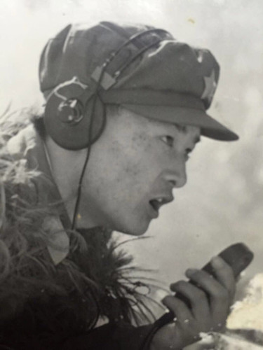 這時(shí)候,反撲的敵人越來(lái)越近了,蔣慶泉向指揮部的兩名話(huà)務(wù)戰(zhàn)士谷德泰和陸洪坤報(bào)告了這一情況??粗绯彼惚平臄橙耍Y慶泉拼盡全力,沖著步話(huà)機(jī)嘶吼:“別廢話(huà)!向我所在的碉堡頂開(kāi)炮!”。在陣地暗堡中,幸存的戰(zhàn)士緊緊圍在蔣慶泉身邊,以保護(hù)他向我炮兵指揮部通報(bào)目標(biāo)的位置。