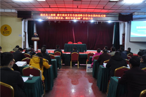 12月10日,商水縣工商聯(lián)、建行商水分行簽署全面戰(zhàn)略合作協(xié)議,共同開展“助力小微企業(yè)、踐行普惠金融”主題宣講活動??h委常委、統(tǒng)戰(zhàn)部長李遠富,縣政協(xié)副主席、工商聯(lián)主席彭發(fā)光,建行周口分行副行長邵崗等領(lǐng)導(dǎo)出席,全縣100多家中小微企業(yè)參加活動。