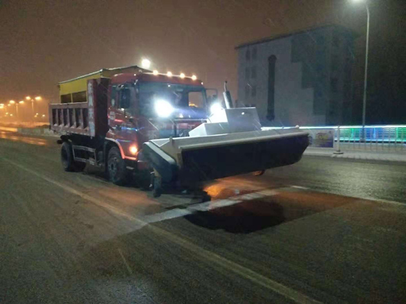 12月11日凌晨1時(shí)許,在周口市區(qū)大慶路橋上,嚴(yán)寒低溫下,一輛融雪環(huán)衛(wèi)作業(yè)車往返橋面拋撒融雪劑。據(jù)悉,為保障路面暢通和廣大市民安全出行,川匯區(qū)愛衛(wèi)辦的工作人員加班加點(diǎn),趕赴各自責(zé)任區(qū)域,連夜對(duì)中心城區(qū)主要路段進(jìn)行消除積冰積雪工作。他們先后對(duì)中州大道橋等市區(qū)幾座橋梁的上下坡道、橋面及文昌大道、七一路、交通大道、中州大道、八一大道、大慶路、建設(shè)大道等主要路段的背陰易結(jié)冰路面進(jìn)行了拋撒融雪劑作業(yè),防止路面結(jié)冰。記者 彭慧 攝