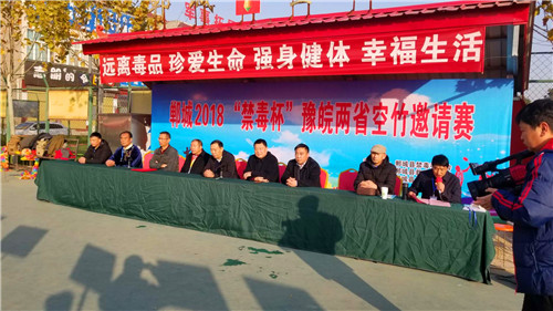 12月16日上午,由鄲城縣禁毒委、鄲城縣公安局、鄲城縣教體局、鄲城縣衛(wèi)計委和鄲城縣空竹協(xié)會聯(lián)合主辦的“禁毒杯”豫皖兩省空竹邀請賽,在鄲城縣世紀廣場舉行。來自我省和安徽省的空竹愛好者們紛紛展示了空竹技藝,參與人員和觀眾在欣賞精彩空竹表演的同時,又得到了禁毒宣傳教育。