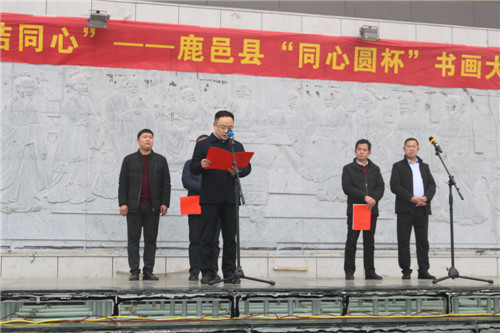 為慶祝改革開(kāi)放40周年,深入學(xué)習(xí)習(xí)近平新時(shí)代中國(guó)特色社會(huì)主義思想和黨的十九大精神, 鞏固和發(fā)展愛(ài)國(guó)統(tǒng)一戰(zhàn)線,在新時(shí)代畫(huà)好最大同心圓, 團(tuán)結(jié)和帶領(lǐng)各族各界人士深入挖掘中華優(yōu)秀傳統(tǒng)文化蘊(yùn)含的思想觀念、人文精神、道德規(guī)范,讓中華文化展現(xiàn)出永久的魅力和時(shí)代風(fēng)采, 12月20日上午,由中共鹿邑縣委統(tǒng)戰(zhàn)部主辦、縣文學(xué)藝術(shù)界聯(lián)合會(huì)承辦、“天地人筆業(yè)”協(xié)辦的鹿邑縣“紀(jì)念改革開(kāi)放四十周年·同心圓杯書(shū)畫(huà)大賽” 在城區(qū)問(wèn)道苑廣場(chǎng)開(kāi)展??h委常委、統(tǒng)戰(zhàn)部部長(zhǎng)閆家明出席開(kāi)幕式并講話??h委統(tǒng)戰(zhàn)部常務(wù)副部長(zhǎng)李繼良,縣文聯(lián)主席王亞飛,副主席于連河以及本次全體獲獎(jiǎng)和入展作者,文聯(lián)所屬各協(xié)會(huì)主席團(tuán)成員近200人參加開(kāi)幕式。