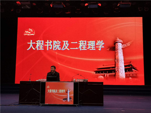 會前,與會人員首先觀看了扶溝文化宣傳片《人文扶溝》。會上,中共中央黨校哲學(xué)教研部副主任、博士生導(dǎo)師董振華教授以《大程書院及二程理學(xué)》為題,從大程書院及二程其人其事、二程思想的歷史地位、二程理學(xué)的核心要義、二程理學(xué)的當(dāng)代價(jià)值等四個方面,通過深入淺出、引人入勝的講解,把二程文化的起源發(fā)展脈絡(luò)清晰明了地展現(xiàn)在聽眾面前。