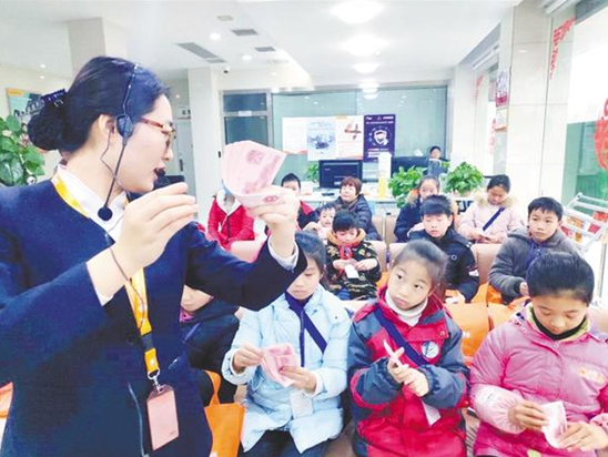 “歡迎各位小記者的到來,大家在過年的時候有沒有收到壓歲錢呢?”項城中銀富登村鎮(zhèn)銀行公司部經(jīng)理馮靖涵的一句話頓時讓小記者們從緊張的情緒中釋放出來?!拔业膲簹q錢,媽媽幫我存在銀行里了!”“我壓歲錢還放在存錢罐里,有時候還會拿出來數(shù)一數(shù)!”……小記者們的回答讓家長們都不由地笑起來。