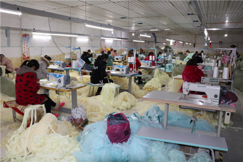 “我以前哪里都沒去過,別說干活掙錢了,公司給我們在家里備了縫紉機,現(xiàn)在可以把活拿到家里做,不出家門,就可以每月掙2000多元,并且常年都有活干?!焙屯趺啦灰粯拥氖?,貧困戶孫艷紅是因為丈夫去世,留下了她和一個智障兒子相依為命,僅僅依靠兩畝地及親戚鄰居的幫助生活,日子過的很是困苦。在金凱盛家紡“扶貧車間”的幫扶下,孫艷紅如今也順利地摘掉了脫貧帽。當(dāng)天在車間里看到她時,她正準(zhǔn)備拿著需要加工縫制的蚊帳,在家邊干活邊照看兒子。