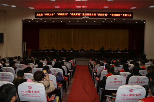 12月29日,鹿邑縣“孝順兒子”“孝順媳婦”“最美家庭”暨首屆“美麗鄉(xiāng)村”“最美庭院”表彰大會(huì)在縣委學(xué)校一樓報(bào)告廳召開(kāi)??h領(lǐng)導(dǎo)付吉廣、武衛(wèi)東、劉銀、宋克言等出席會(huì)議。縣委宣傳部、文明辦、縣總工會(huì)、縣婦聯(lián)、縣委農(nóng)辦、縣扶貧辦等部門負(fù)責(zé)人與來(lái)自全縣各鄉(xiāng)鎮(zhèn)辦事處的300多名干部群眾代表參加會(huì)議。