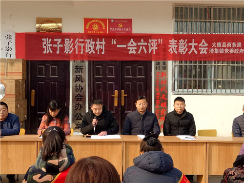 太康縣商務局局長李曉虹會上講了開展“一會六評”表彰會的意義和駐村幫扶的目的,對一年來的駐村幫扶工作進行了匯報。清集鎮(zhèn)黨委書記吳文靜宣讀了表彰決定??h政府副縣長喬偉做了講話。