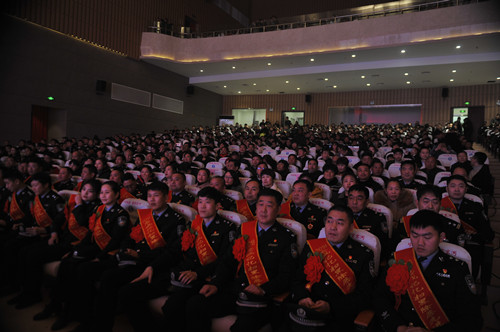 熠熠金盾耀新春,崢嶸歲月訴衷腸。1月24日晚,鹿邑縣文化中心大會(huì)堂里座無(wú)虛席,鹿邑縣公安部門(mén)在這里隆重舉行“2018忠誠(chéng)記憶”職業(yè)榮譽(yù)頒獎(jiǎng)儀式??h領(lǐng)導(dǎo)李剛、李國(guó)際、雷申、侯自峰、陳巍、何新敏、齊梅英等和公安民警、警屬代表等共千余觀眾在現(xiàn)場(chǎng)共同見(jiàn)證。