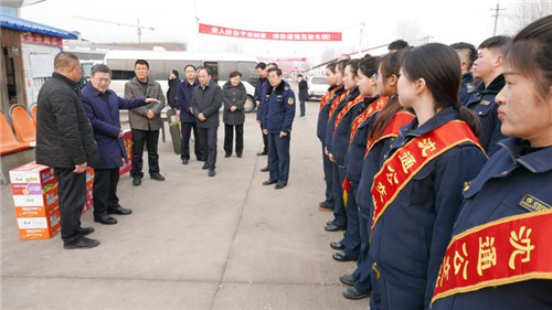 在縣公交公司,皇甫立新首先向全體干部職工致以節(jié)日的問(wèn)候,對(duì)他們一年來(lái)為全縣人民安全順利出行做出的貢獻(xiàn)表示感謝。在認(rèn)真聽取有關(guān)負(fù)責(zé)人關(guān)于節(jié)日期間增開班車和車次的匯報(bào)后,皇甫立新說(shuō),公交車作為公共交通運(yùn)輸體系中的重要組成部分,不僅在完善城市交通運(yùn)輸格局、方便市民出行方面發(fā)揮著重要作用,同時(shí)也是城市形象的象征。希望堅(jiān)守崗位的公交職工要繼續(xù)提供優(yōu)質(zhì)服務(wù),文明安全駕駛,為居民在春節(jié)期間走親訪友和安全出行提供方便、搞好服務(wù),展示出沈丘公交公司員工的良好素質(zhì)和良好形象。并叮囑公交公司負(fù)責(zé)人要合理安排好職工的工作和生活,為廣大一線工作人員安心工作提供堅(jiān)實(shí)的后勤保障,讓他們更加舒心愉快地服務(wù)廣大群眾。