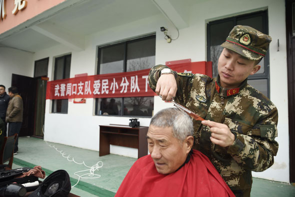 鄉(xiāng)村老年人們的身體狀況牽動著支隊領導的心,他們派出支隊醫(yī)務人員走進村落,在簡易的地方辦起巡診。藥盒上的細心標記,手把手的診療,情真意切囑咐,都是官兵們真切的表達。支隊理發(fā)員帶著理發(fā)工具和一顆赤誠的心來到了村里,為老人們邊理發(fā)邊嘮家常,老人臉上樂開了花兒,笑著說“我家孫子和你大小差不多哩!”村里的孩子們也很喜歡這群穿著軍裝的叔叔們,不僅因為他們每次來都會送上精美學習用品,先進的多媒體設備,更因為他們身上軍人特有的責任與擔當。