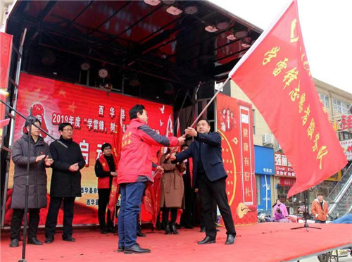 9時30分,啟動儀式開始??h委組織部有關(guān)領(lǐng)導發(fā)表了熱情洋溢的致辭;縣非公黨工委書記、縣工商和質(zhì)監(jiān)局局長李永民向西華縣無人機產(chǎn)業(yè)園、西華縣真愛婦產(chǎn)科醫(yī)院、西華縣城市公共交通有限公司等7家非公企業(yè)黨支部學雷鋒志愿服務(wù)隊代表授旗,并動員廣大非公企業(yè)黨支部、個私經(jīng)營者開展形式多樣、豐富多彩的學雷鋒志愿服務(wù)活動;東方國際商業(yè)有限公司黨支部黨員志愿者代表作了情真意切地表態(tài)發(fā)言。最后,縣委宣傳部有關(guān)領(lǐng)導宣布活動正式啟動。