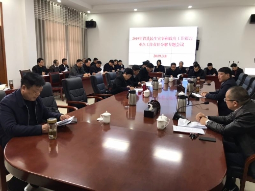 3月8日下午,鹿邑縣縣委常委、常務副縣長陸志杰主持召開2019年省縣民生實事和政府工作報告重點工作責任分解專題會??h領導張峰、曹玉娟、毛斌、王初立出席會議。