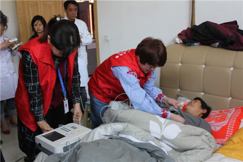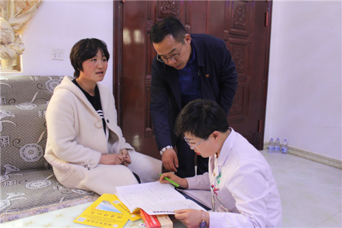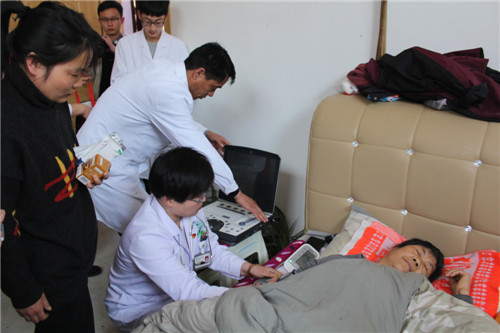 在王崗家中,專家們先后為王崗父母、妻子進(jìn)行了彩超、心電圖、血壓、血糖等項目檢查,并根據(jù)檢測數(shù)據(jù),現(xiàn)場分析、研究病情,做了詳細(xì)醫(yī)囑,還為他們送了包含各種項目的健康體檢表。
