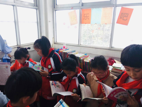 為迎接世界讀書日的到來,引導(dǎo)學(xué)生“在閱讀中成長,在成長中閱讀”,養(yǎng)成終身閱讀的好習(xí)慣,周口六一路小學(xué)在全校范圍內(nèi)創(chuàng)建班級(jí)圖書角,每個(gè)班級(jí)圖書角的藏書超過百冊(cè)。圖為孩子們?cè)趫D書角認(rèn)真閱讀。