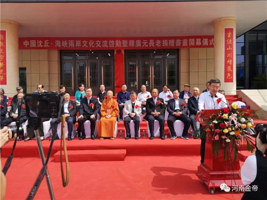 5月11日上午,沈丘縣城新區(qū)新落成的釋廣元藝術(shù)館門前熱門非常,來自海峽兩岸的各界人士相聚在這里,見證了中國沈丘·海峽兩岸文化交流暨釋廣元長老捐贈(zèng)書畫展活動(dòng)的開啟。