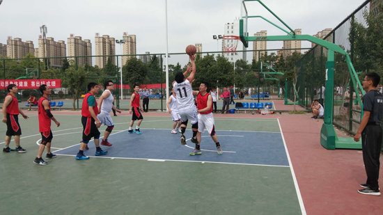 5月20日,在市體育中心籃球場,市直機關(guān)第三屆職工運動會籃球比賽正在激烈進行。