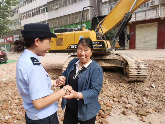 “創(chuàng)衛(wèi)不留死角,想盡辦法也要給市民良好的出行體驗(yàn)?!笔泄簿终匍_(kāi)黨委會(huì)議專(zhuān)題研究建新路西段附近居民出行問(wèn)題,發(fā)出“克服困難、自掏腰包、推倒違建、平整道路”的指令,號(hào)召全警幫助居民實(shí)現(xiàn)安全出行?!斑@些民警、社區(qū)干部都跟我的孩子差不多大,看著他們頂著大太陽(yáng)清理雜物,夜里還在加班加點(diǎn)工作,我給他們說(shuō)‘孩子來(lái)家喝口水,吃個(gè)飯’他們都笑著拒絕了。真感謝他們,也心疼他們。”說(shuō)起“創(chuàng)衛(wèi)”以來(lái),市公安局民警和社區(qū)干部的工作,70多歲的智老太眼含熱淚。