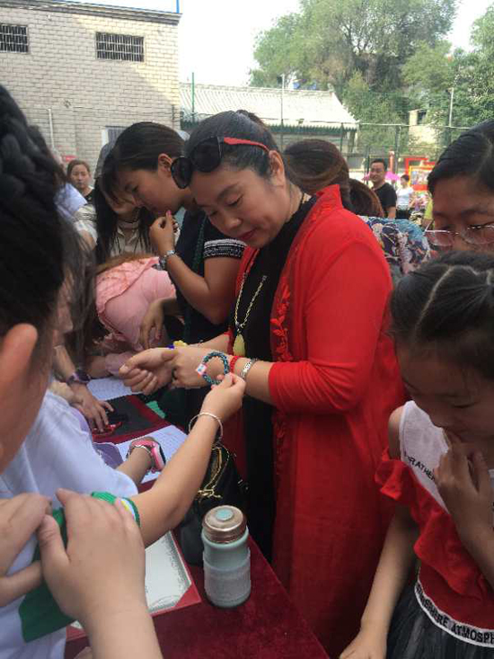 5月25日上午,沈丘縣中國結(jié)第七代傳承人李?;ㄗ哌M(jìn)槐店鎮(zhèn)回民小學(xué),和學(xué)?!爸袊Y(jié)”手工編織興趣班的20名學(xué)生舉行“愛心義賣,情暖校園”主題活動。不到半小時,100多件作品被搶購一空還預(yù)定了很多。據(jù)悉,這次義賣共得到1200余元,將全部捐給“槐店鎮(zhèn)中心學(xué)校教育基金”,用來資助該鎮(zhèn)經(jīng)濟困難師生、獎勵優(yōu)秀教師和學(xué)生、資助教育教研等重大活動項目。
