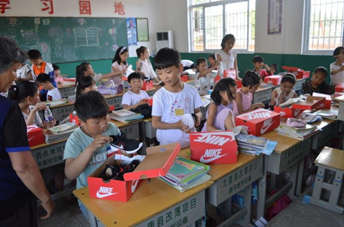 說干就干,回到公司,他便安排專人負(fù)責(zé),為母校的260多名師生每人購(gòu)買了一雙出廠價(jià)200余元,總價(jià)值5萬(wàn)余元而市場(chǎng)價(jià)則需10多萬(wàn)元的國(guó)際知名品牌—耐克牌運(yùn)動(dòng)鞋,為學(xué)校落實(shí)陽(yáng)光體育運(yùn)動(dòng),強(qiáng)健孩子的體魄打下了良好的物質(zhì)基礎(chǔ),受到當(dāng)?shù)馗扇旱囊恢潞迷u(píng)。