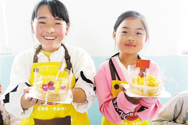 為慶?!傲弧?,日前,團市委組織我市青年志愿者和愛心人士到西華縣李方口小學和幾十名留守兒童一起做蛋糕。圖為留守兒童展示自己做的蛋糕。記者 王凱 攝