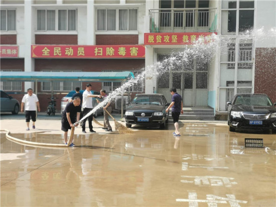 雖然天氣炎熱,大家汗流浹背,卻熱情高漲,積極性很高,大家紛紛拿起掃帚、抹布,提上水桶,充分發(fā)揚不怕臟、不怕累的精神,對院內道路、車棚、宣傳欄、綠化帶等處進行沖洗、清掃,同時對各樓層門窗玻璃、消防栓、廁所等進行集中清理……經過兩個多小時的辛勤勞動,各辦公室窗明幾凈,廁所衛(wèi)生干凈整潔,車棚車輛擺放整齊,院內環(huán)境煥然一新。