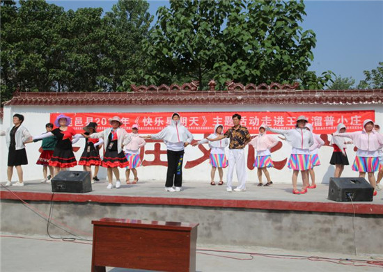 器樂演奏、豫劇、歌曲、舞蹈、健身舞等在鄉(xiāng)村文化廣場次第演出,現(xiàn)場精彩不斷,高潮迭起……6月23日,由鹿邑縣委宣傳部、統(tǒng)戰(zhàn)部、縣文聯(lián)主辦的“快樂星期天”系列主題活動,在王皮溜鎮(zhèn)普小莊村、觀堂鎮(zhèn)郭窯村文化廣場如期拉開大幕,來自縣文聯(lián)各大協(xié)會的志愿者為廣大群眾送上兩場豐富多彩的“文藝大餐”。